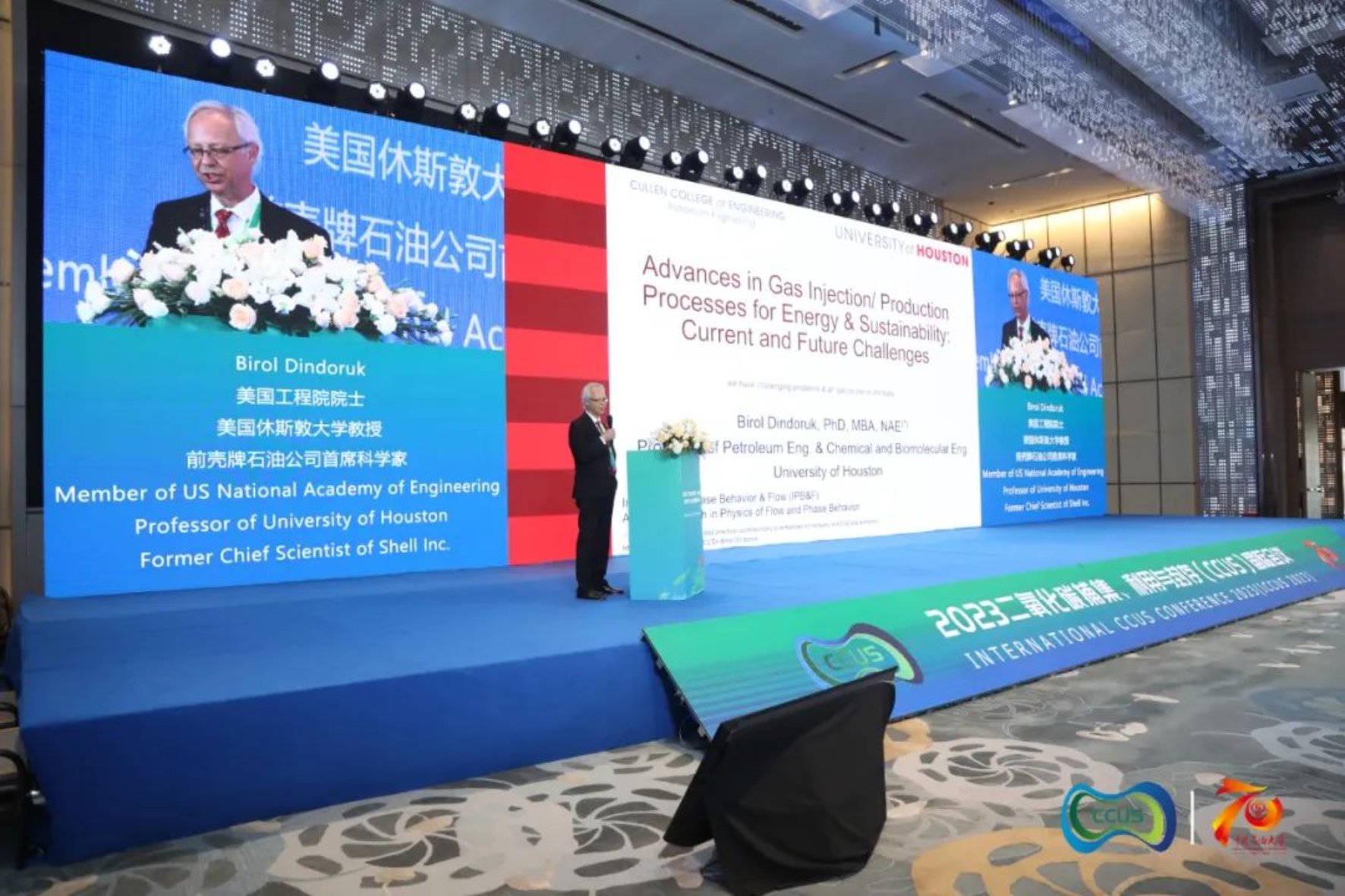 4月14日上午,在2023CCUS国际会议上,中国工程院院士李阳、美国工程院院士Birol Dindoruk、挪威工程院院士Tao Yang及Chunming Rong、awc77万象城官网副校长金衍教授等专家学者就二氧化碳捕集与封存技术研究进展与未来挑战、碳交易等议题作了高水平学术报告。