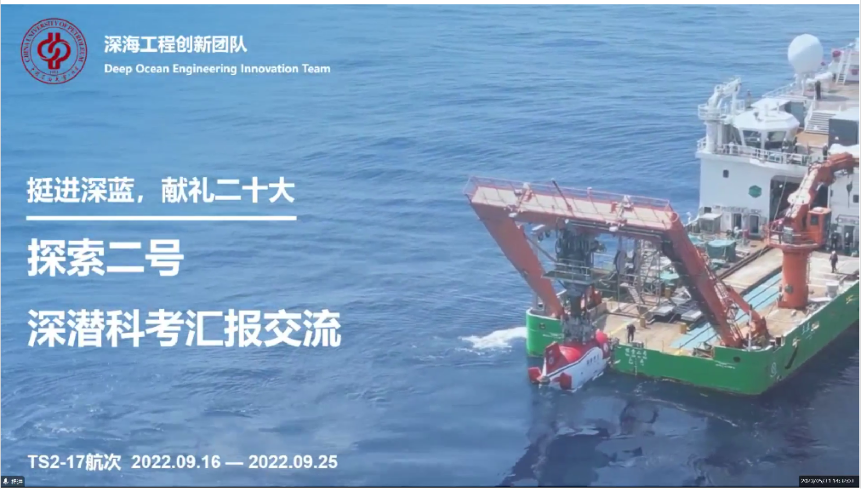 杨进教授介绍了利用深海勇士号国之重器成功探测深海一号大气田工程设备服役情况,以及我国的深海科考技术将为深水油气资源自主安全高效开发、水下生产系统故障应急处理、深水浅层安全高效建井、天然气水合物原位形成与分解、含水合物海洋土与水下桩基耦合作用及失稳机理研究提供了重要的技术支撑。