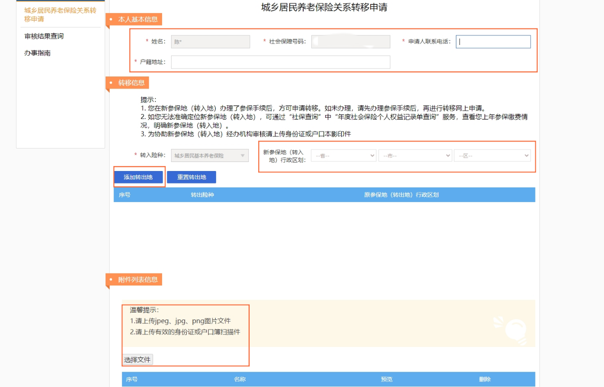 4. 填写必填信息和上传身份证或户口簿扫描件