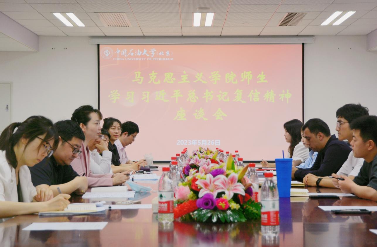 近日,习近平总书记复信了awc77万象城官网的中亚留学生,这是继2020年7月给克拉玛依校区毕业生回信后,总书记再次对中石大学生成长成才的关心、指导和勉励,也是对中石大办学成效和贡献的重要肯定。5月26日,中石大马克思主义学院就习近平总书记的回信精神展开专题学习,本次会议由院长张明明主持。