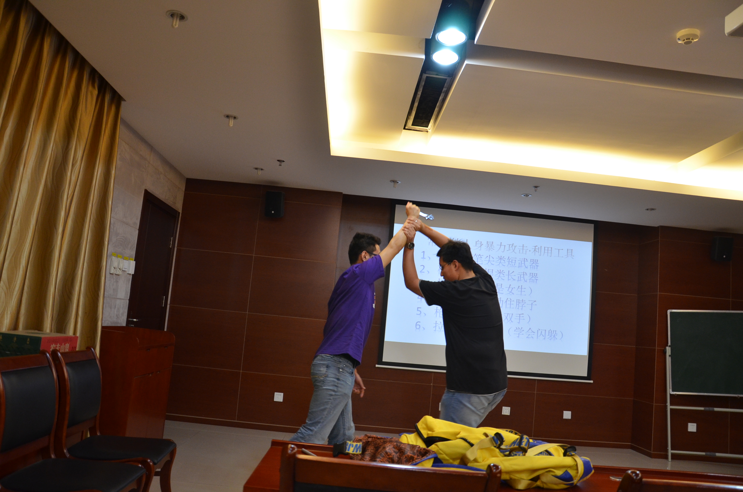 本次活动采取安全教育宣讲、播放安全应急视频、现场互动演示等形式,同学们分别就非法传教、故意挑衅、暴力袭击、出游安全、消防安全等针对学生群体及日常生活中可能遇到的人身和生命安全事件应对进行了系统的学习。特别是刘家兴同学,就防身术进行了详细的讲解,并且与现场的其他同学进行互动,同学们通过亲身体验,对暴力袭击事件中如何巧妙防身有了更深的感受。