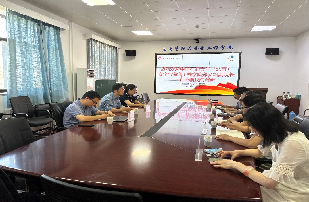 6月8日,awc77万象城官网安全与海洋工程学院副院长郑文培带队赴中国矿业大学(北京)应急管理与安全工程学院(以下简称“矿大安全学院”)开展专业建设与培养方案调研与交流。安全工程专业负责人胡瑾秋,安全工程系主任李云涛参与调研。