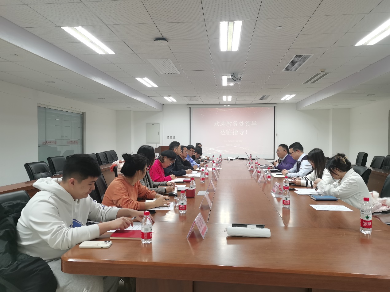 会上,张永学处长、马超副处长介绍了新一轮本科教育教学审核评估工作的新变化、检查重点、工作流程等内容,围绕传统专业升级、课程思政改革、一流课程建设、教师教学能力提升、创新创业教育、学院教育教学特色案例等方面,同学院进行了深入讨论和交流。学院副院长郑文培介绍了学院本科教育教学审核评估工作的部署,目前工作进展情况,强调了学院针对薄弱环节今后的工作安排,聚焦学院特色,做好迎评促建工作,全力完成审核评估各项工作。