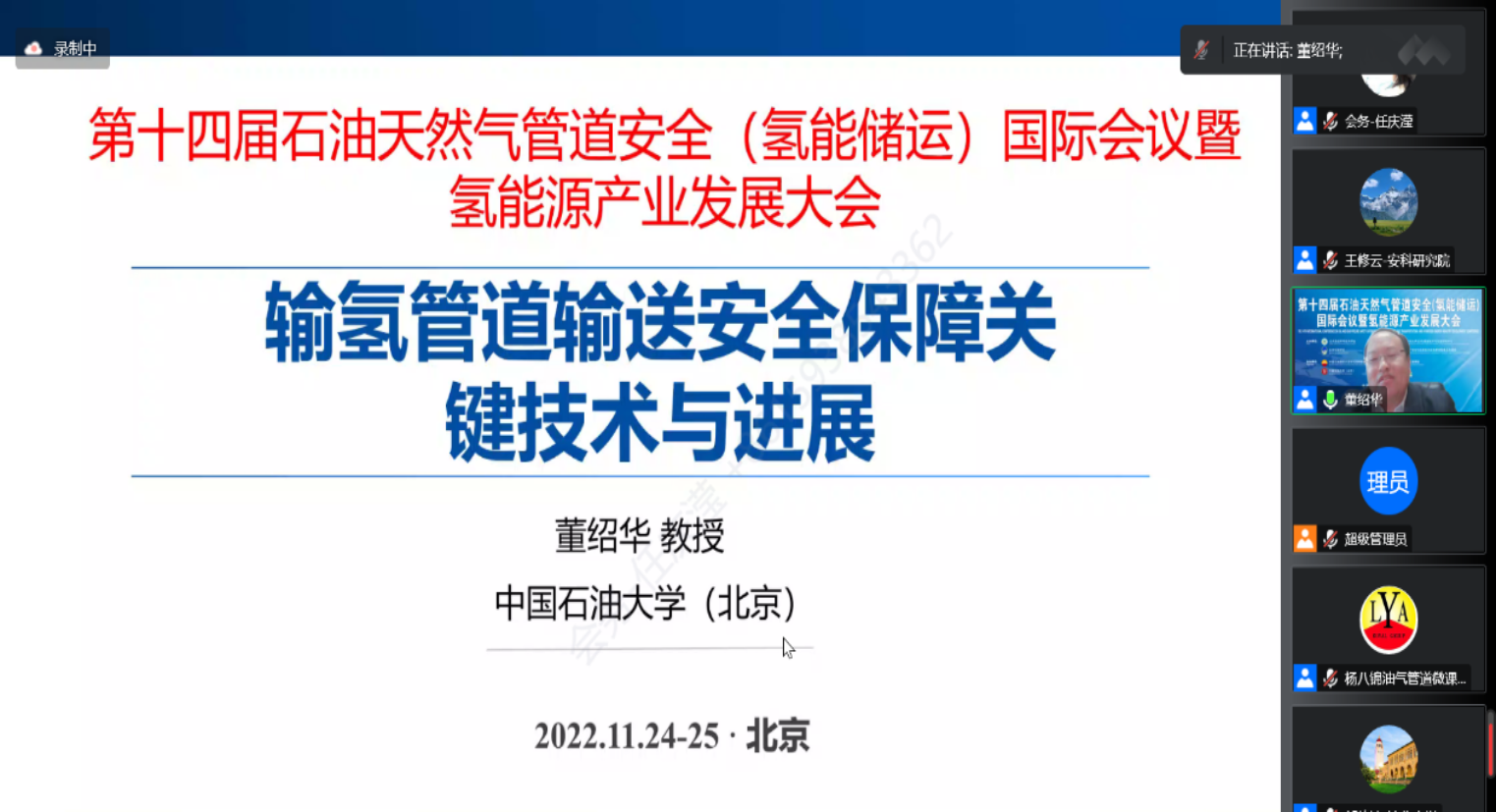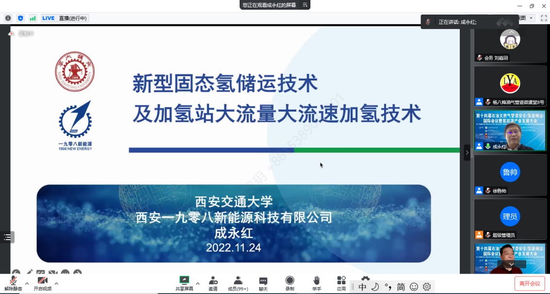 11月24日至25日,由公共安全科学技术学会石油与化工安全专业工作委员会、北京石油学会、中国石油勘探开发研究院新能源研究中心、中国石油大学(北京)联合主办,油气生产安全与应急技术应急管理部重点实验室、管道技术与安全研究中心承办的“第十四届石油天然气管道安全(氢能储运)国际会议暨氢能源产业发展大会”在线召开。