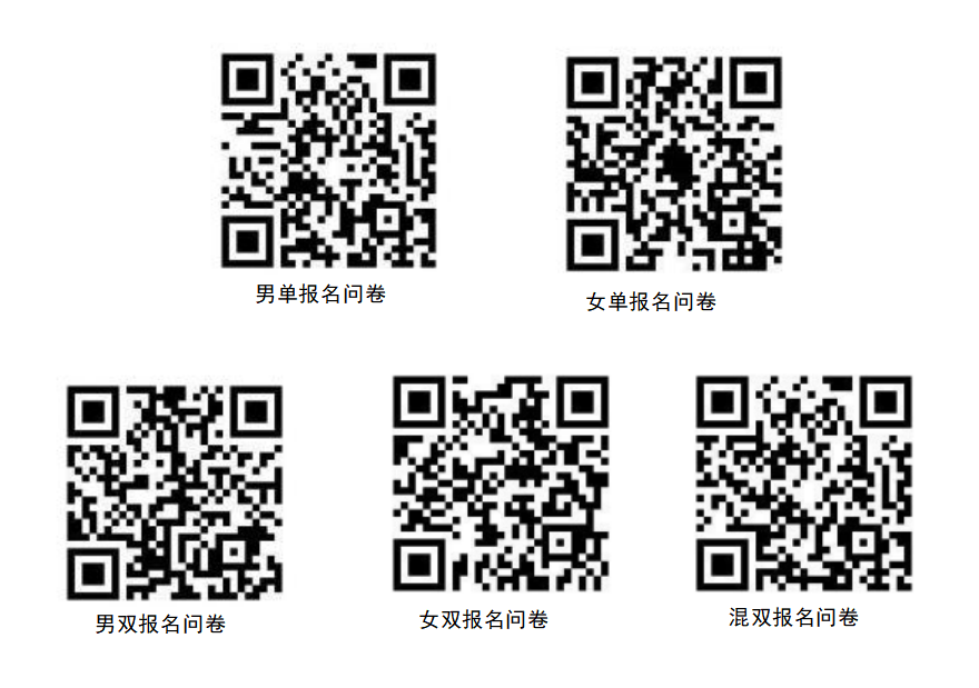 通过填写下方对应问卷报名对应项目, 其中双打队伍两人只需填写一份问卷。须保证信息真实有效,填写完成后会弹出比赛群,请及时加入