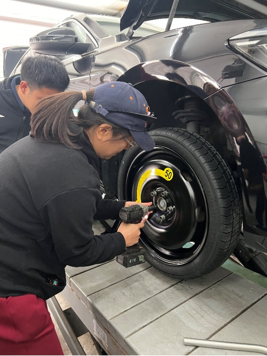 后勤的专业维修人员陈琦师傅为学院教师详细介绍了防冻液更换、刹车片磨损、故障灯说明、车胎更换等基础汽车知识。学院教师认真聆听理论讲解,不时动手实践,增进了对汽车养护和使用的理解。