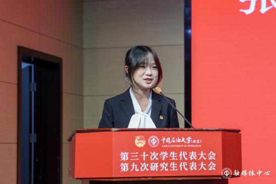 开幕会上,第二十九届学生会主席团成员张润霞同学作了题为《高擎旗帜 勇立潮头 团结引领中石大学子为加快建设能源领域特色鲜明的世界一流研究型大学贡献青春力量》的工作报告;第三十届研究生会主席团成员李明伟同学作了题为《挺膺担当 团结奋斗 为加快建设能源领域特色鲜明的世界一流研究型大学贡献青春力量》的工作报告。