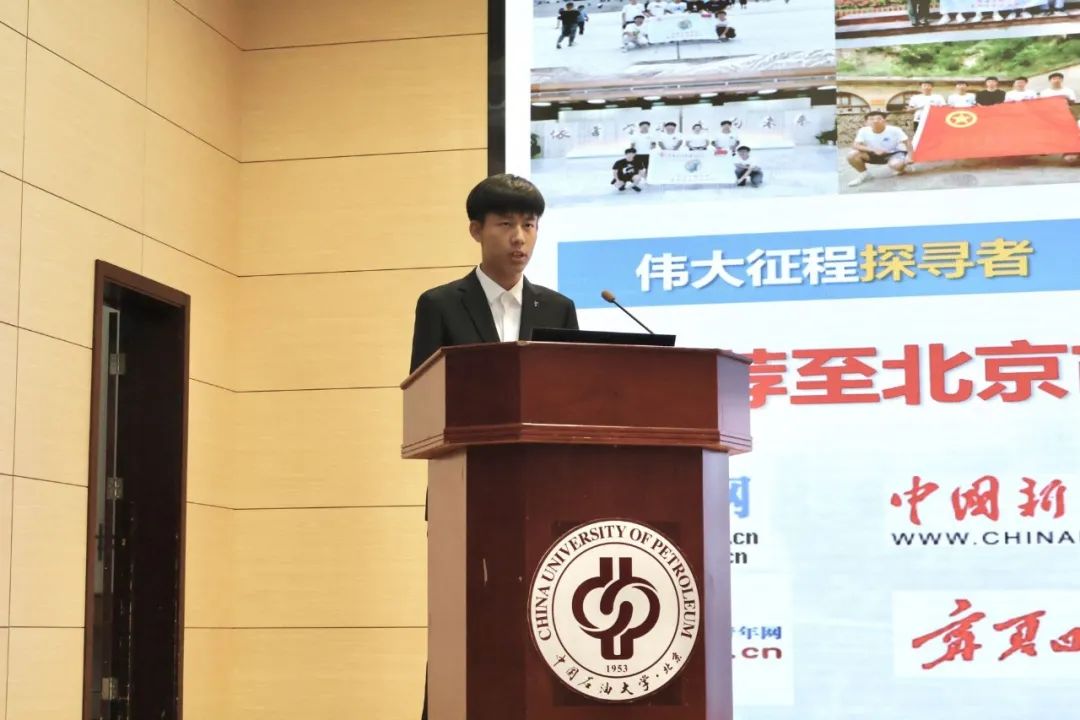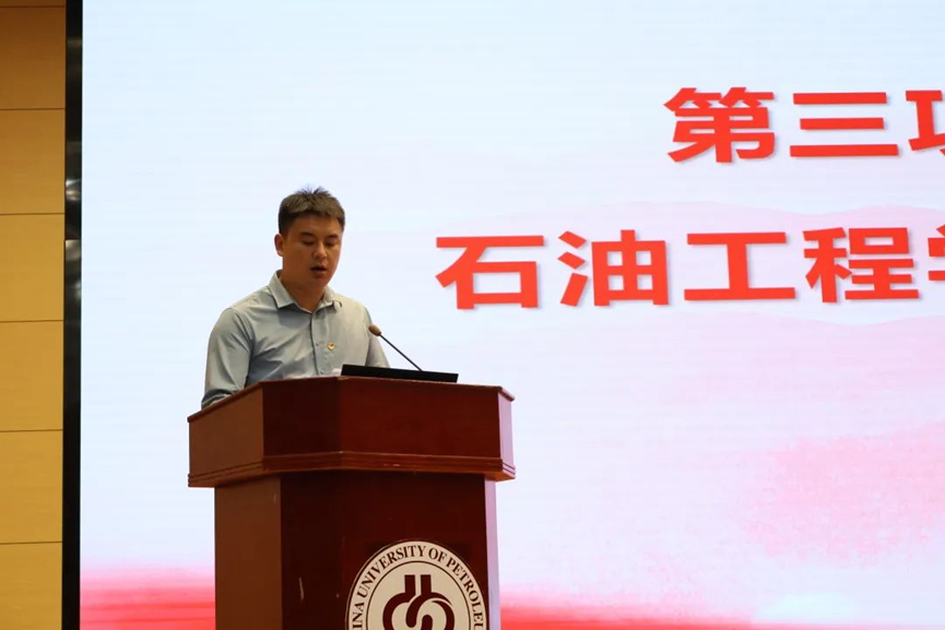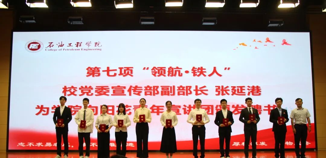 在“领航·铁人”环节,校党委宣传部副部长张延港为向阳花青年宣讲团颁发聘书。随后,向阳花青年宣讲团成员蒋孟晨以“石油人,石油魂,石油情”为主题开展第一课培训,她讲述了新中国石油工业的光辉发展历程,通过讲述王进喜、吴淑华、曹立虎三位石油人的光荣事迹,阐释铁人精神,激励同学们秉持“我为祖国献石油”的理想信念,不断进取,为祖国能源事业贡献青春力量。