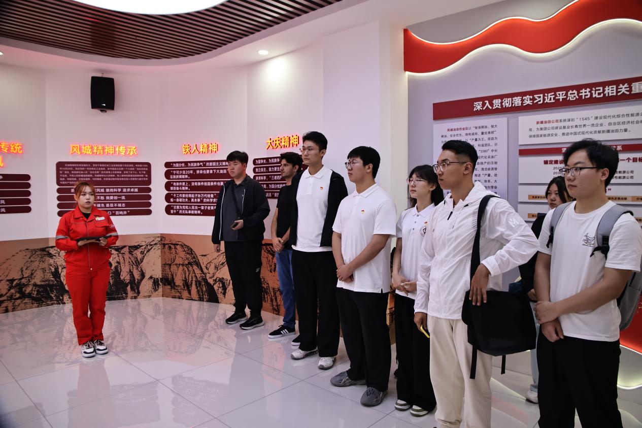 在风城油田作业区和101窑洞,实践团成员们深入了解了老一辈石油工人的工作和生活环境。通过观看影片、仿真模型,成员们沉浸式地体验了“安下心、扎下根、不出油、不死心”的新疆油田精神。窑洞内保留下来的医务室、图书馆、会议室以及宿舍等生活区域,让成员们仿佛回到了那个激情燃烧的岁月,亲耳聆听了石油先辈们战天斗地、无私奉献的感人故事,更加坚定了他们为石油事业贡献力量的决心。