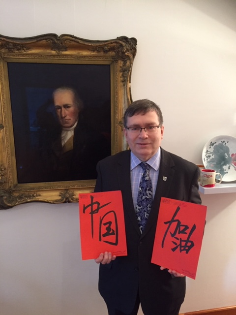 On February 18, Professor Richard Williams, President of Heriot-Watt University, Executive Deputy Dean of the Royal Academy of Engineering, and Academician of the Academy of Engineering, sent a letter of consolation. “During such difficult times, our thoughts and support are with our Chinese colleagues at CUP. We wish a prompt return to normal operation followed by success and prosperity.” Richard personally wrote down the four Chinese characters "中国" and "加油", and showed best wishes to China for fighting against the epidemic.