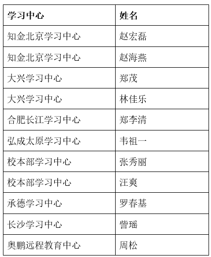 为了调动广大学生的学习积极性,鼓励优秀学生发挥模范带头作用,学院组织开展了2021春季评优工作。经过学生个人申报、学习中心初审、学院评审小组终审,最终评选出优秀毕业生11名。