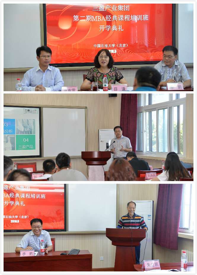薛谦院长分别从“小”、“特”、“强”、“变”几个关键字展开来讲,向学员们详细介绍了学校的办学规模、师资队伍、学科建设、机构改革等方面的发展情况,并回顾了我院与委培方的合作情况,希望学员尽快实现身份的转变,珍惜培训机会,努力学习,并鼓励大家在校期间积极参加学校举办的系列讲座和校庆活动,储备知识、开阔眼界,能够运用所学知识提高管理能力,以更好的工作业绩回馈于企业。委培方总裁向学员们阐述了举办此次培训的初衷和目的,希望学员能利用好石油大学这个平台,鼓励大家带着工作中的问题与思考多向老师请教,勤与同学交流。希望学员们在公司快速发展的关键时期,能够学习应用先进的管理知识,提升综合管理业务水平,为企业的发展做出更大的贡献。开学典礼上学员代表郑重向公司表态:全体学员会严格遵守学校的纪律,努力学习,在石油大学收获知识、收获友谊。大家会积极响应习总书记的号召,撸起袖子加油干,与时俱进、开拓创新,积极推进公司的发展壮大。
