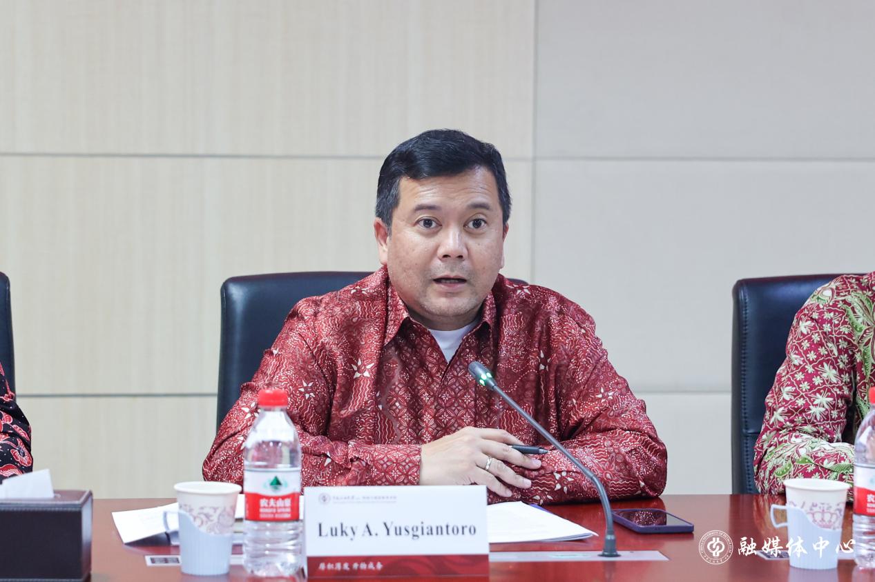 路克·尤斯吉安托罗感谢中石大的热情接待。他表示,中石大作为全球能源领域知名高校,在油气与新能源科研方面实力雄厚。印尼当前正积极推进能源结构转型与高层次人才培养,希望未来与中石大在国际培训、学生实习实践等方面建立长期稳定的合作关系,并欢迎中石大代表团赴印尼回访交流。