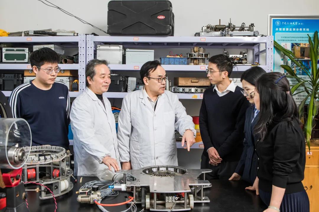 张来斌与团队成员、研究生一起在实验室开展研讨