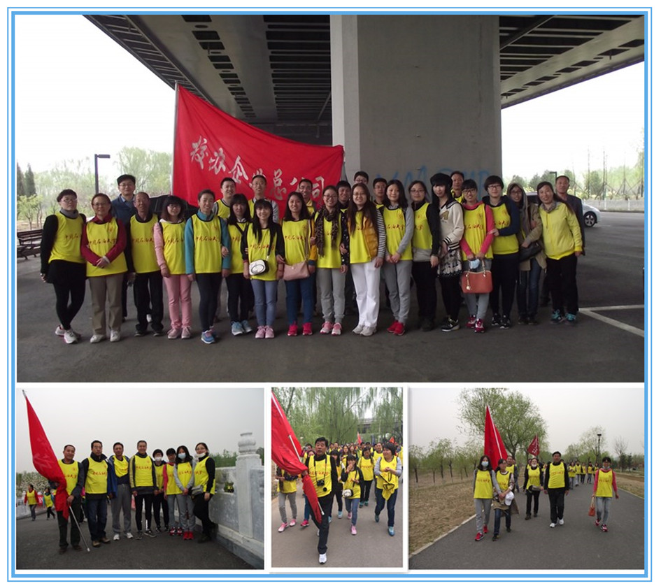 2015年4月18日,在这莺飞草长的四月天,校办企业总公司工会组织43名员工及家属来到昌平区东大桥下,参加学校第四届教职工“走向健康”长走活动。此次长走路程全长7公里,历时2个小时左右。