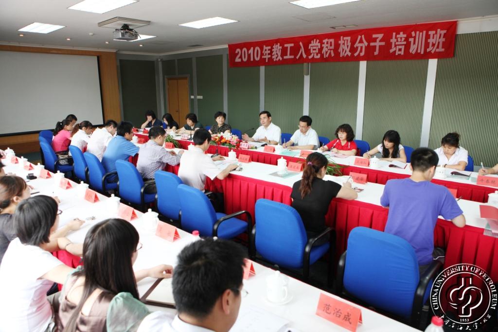 为加强在优秀中青年教职工中发展党员工作,提高教工入党积极分子培养教育质量,提高党在广大知识分子中的影响力和凝聚力,6月8日,中国石油大学首期教工入党积极分子培训班在翠宫第五会议室正式开班,24名教工入党积极分子参加了培训。